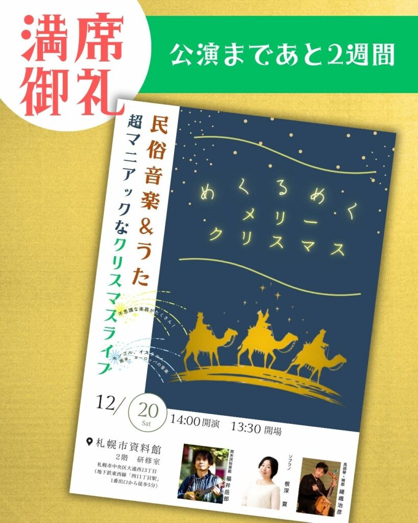 馬頭琴や南米の笛、古楽にのせた歌声で、誰も知らないクリスマスの世界へご案内します。