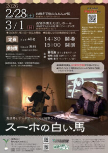 2/28(土)・3/1(日)馬頭琴とサンドアートで紡ぐ絵本ライブ~「スーホの白い馬」